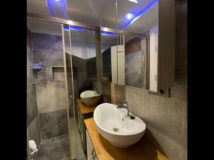 fully equipped open american kitchen, guest wc bathroom,